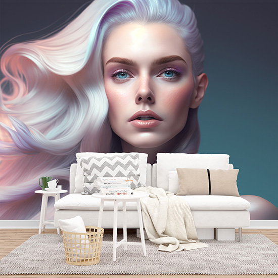 3D Beyaz Saçlı Kadın Güzellik Merkezi Duvar Kağıdı YK-00570