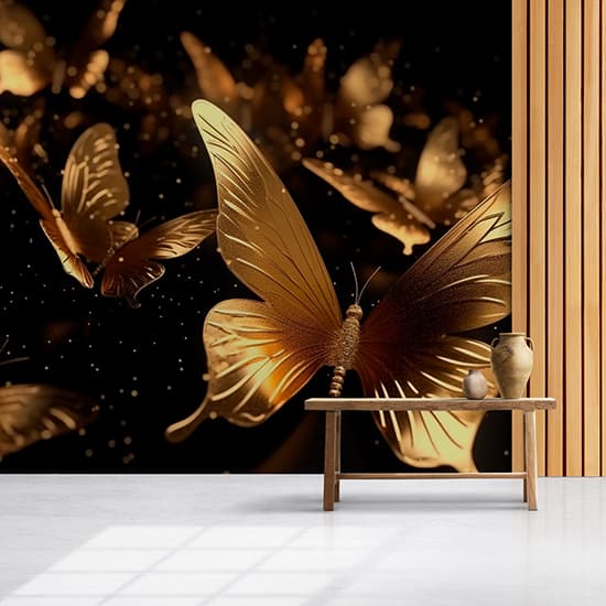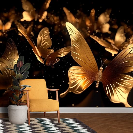 3D Gold Kelebekler Tek Parça Modern Duvar Kağıdı YH-02217