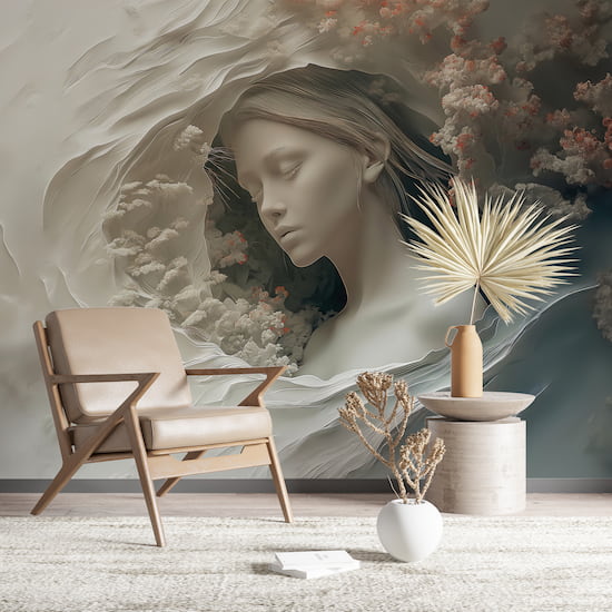 3D Kadın Duvar Kağıdı, İllüzyon Heykel Duvar Kağıtları YK-02542