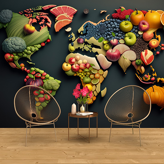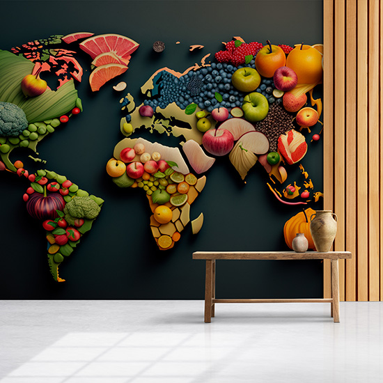 3D Meyve ve Sebze Haritası Cafe Duvar Kağıdı YC-00507