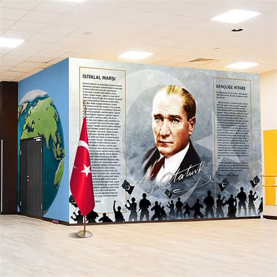 Atatürk Köşesi Poster Duvar Kağıdı Tek Parça DKO-4, Dekoros grafikerlerinin tasarladığı en güzel dijital baskı duvar kağıdı ve modellerinden biridir. Üstelik istediğiniz her boyutta baskı yapabiliriz. Ayrıca kişiye ve kuruma özel tasarım da yapıyoruz. Kaliteli gerçekçi baskı harika duvar kağıtları. Tüm Türkiye’ye adrese teslim gönderilir. Ayrıca poster Duvar Kağıtları uygulama videoları için youtube sayfamızı ziyaret et.