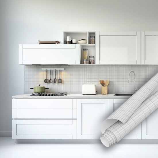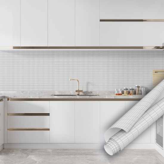 Beyaz porselen görünümlü mozaik desenli kendinden yapışkanlı folyo modelleri ile evinizin havasını değiştirin. Üstelik mozaik desenli folyolar en çok tercih edilen yapışkan folyo modelidir.