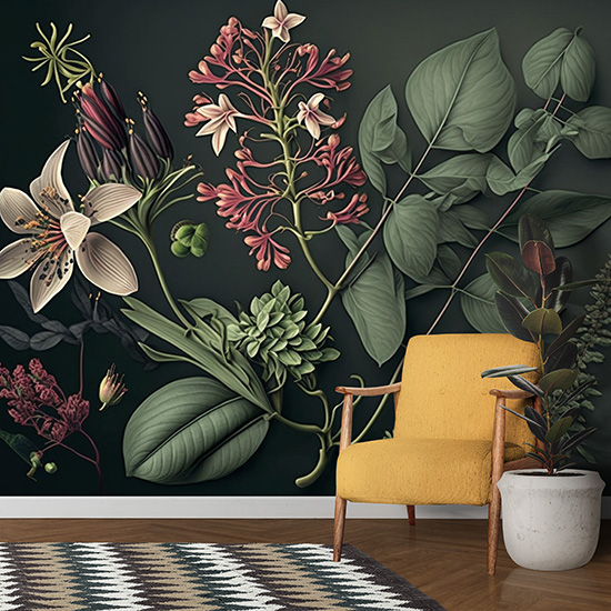 Botanik Çiçekler Sanatsal Duvar Kağıdı YF-00682
