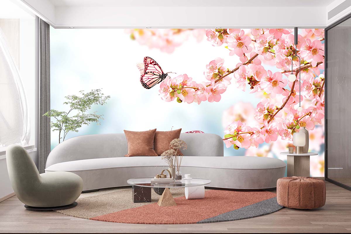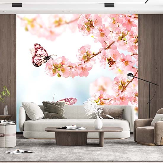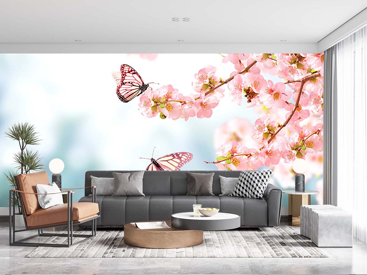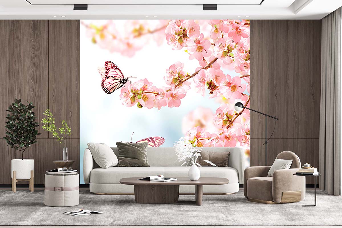 Çiçekler Ve Kelebek Duvar Kağıdı P0018