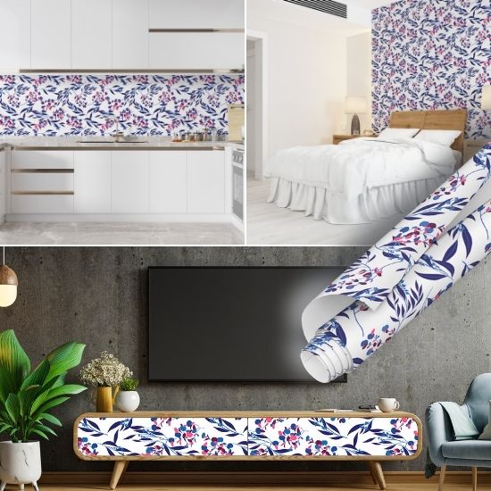 Pembe mor çiçekler desenli yapışkanlı folyo kullanarak zahmetsiz bir şekilde eviniz için şık bir görünüm yaratabilirsiniz. Size en uygun ölçü varyasyonunu seçerek sipariş veriniz.
