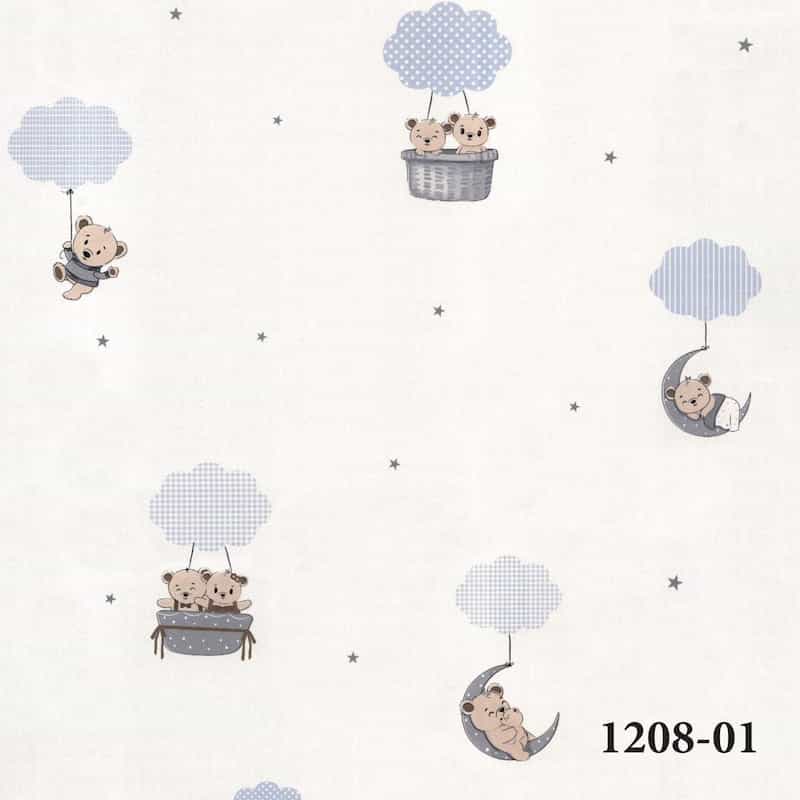 Deco Junior Çocuk Odası Duvar Kağıdı 1208-01, ay üzerinde uyuyan sevimli ayıcık figürleri ve yumuşak mavi bulutlarıyla sakinleştirici bir etki yaratır. Minimal yıldız detaylarıyla tamamlanan Deco Junior Çocuk Odası Duvar Kağıdı 1208-01, bebek odalarında huzurlu ve masalsı bir atmosfer oluşturur. Şimdi Dekoros’da tüm Deco Junior kreasyonunu görmek için Tıkla!.