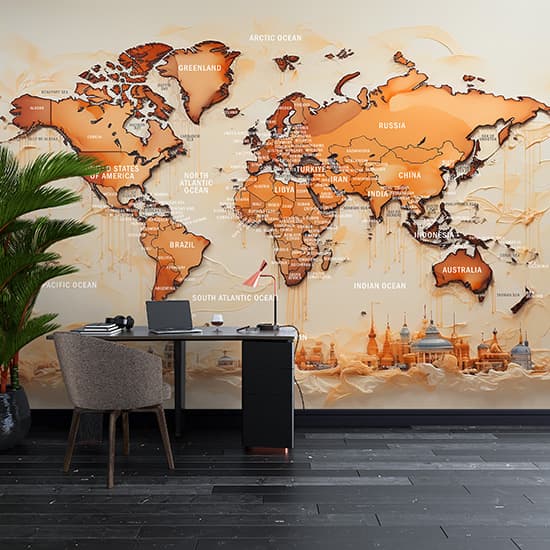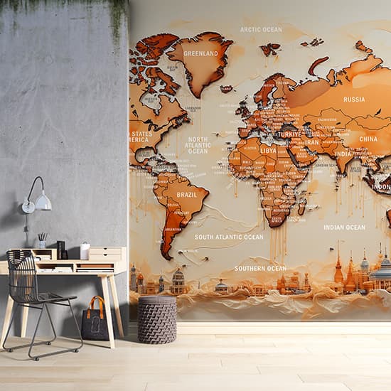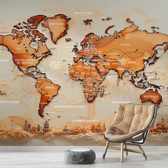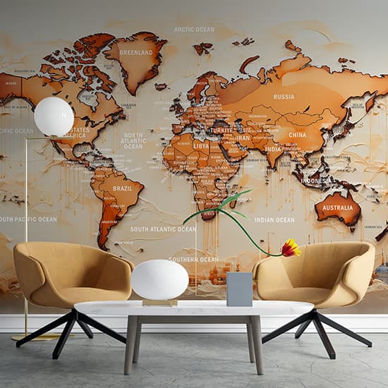 Turuncu Dünya Haritası Duvar Kağıdı Ülkeler, Okyanuslar ve Denizler YH-02431, Dekoros grafikerlerinin tasarladığı en güzel dijital baskı duvar kağıdı ve modellerinden biridir. Üstelik istediğiniz her boyutta baskı yapabiliriz. Ayrıca kişiye ve kuruma özel tasarım da yapıyoruz. Kaliteli gerçekçi baskı harika duvar kağıtları. Tüm Türkiye’ye adrese teslim gönderilir. Ayrıca poster Duvar Kağıtları uygulama videoları için youtube sayfamızı ziyaret et.