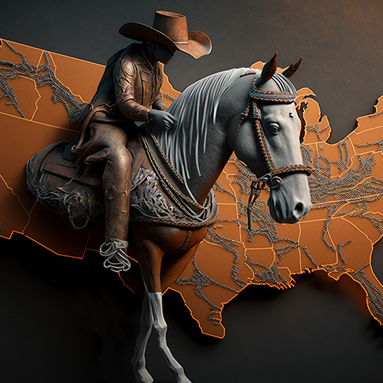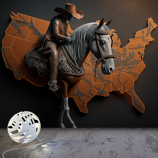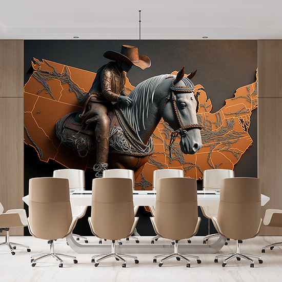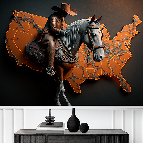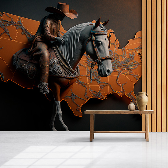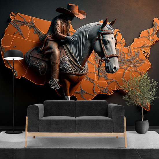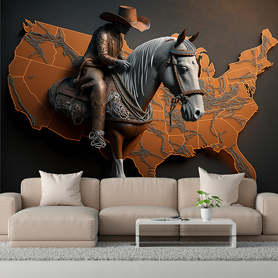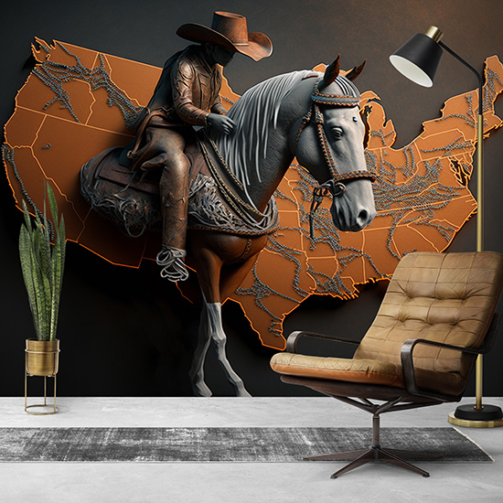 Dünya Haritası Üzerinde Bir Kovboy ve Atı Duvar Kağıdı YHA-00432,