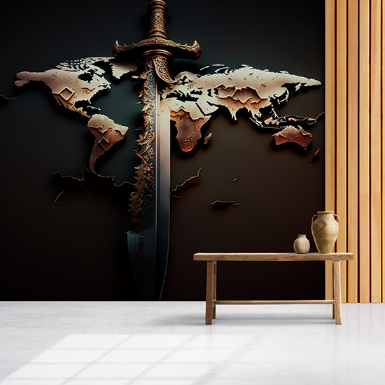 Dünya Haritası ve Bir Kılıç Vintage Duvar Kağıdı YHA-00448
