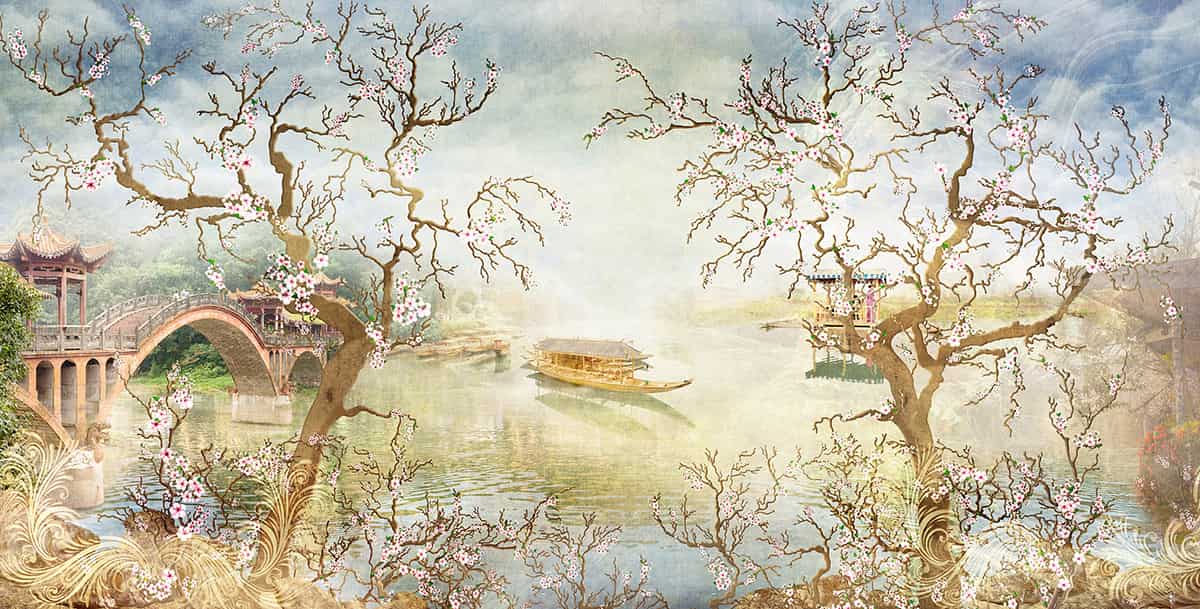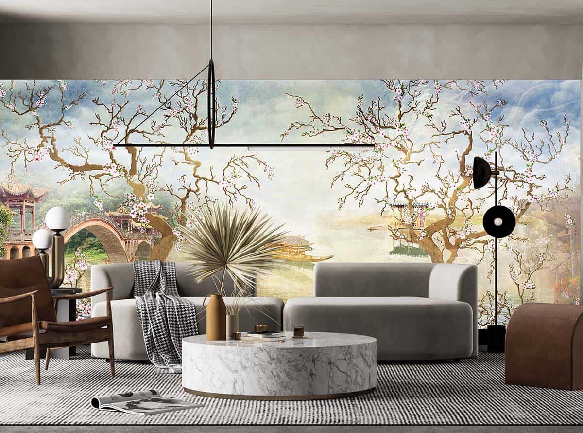 Duvar Kağıdı Eğri Kiraz Ağaçları C1090