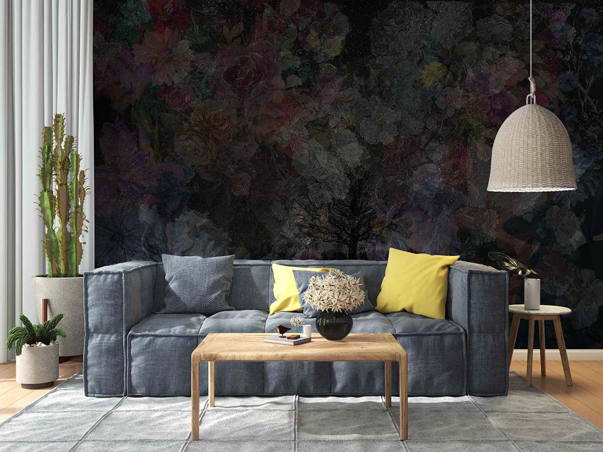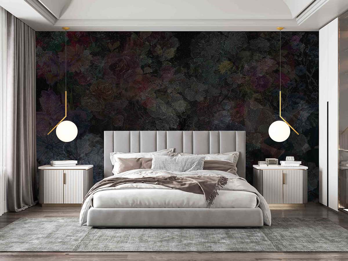 Duvar Kağıdı Özel Tasarım Koyu Çiçekli H0022