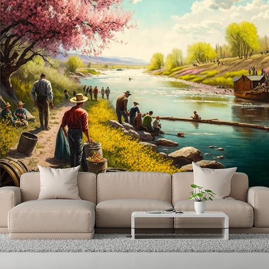 Göl Kenarında İnsanlar Manzara Duvar Kağıdı YD-00397