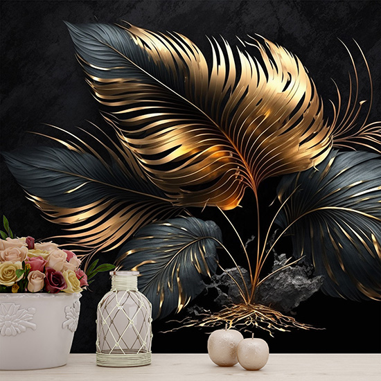 Gold ve Siyah Mat Yaprak 3D Duvar Kağıtları YF-02044