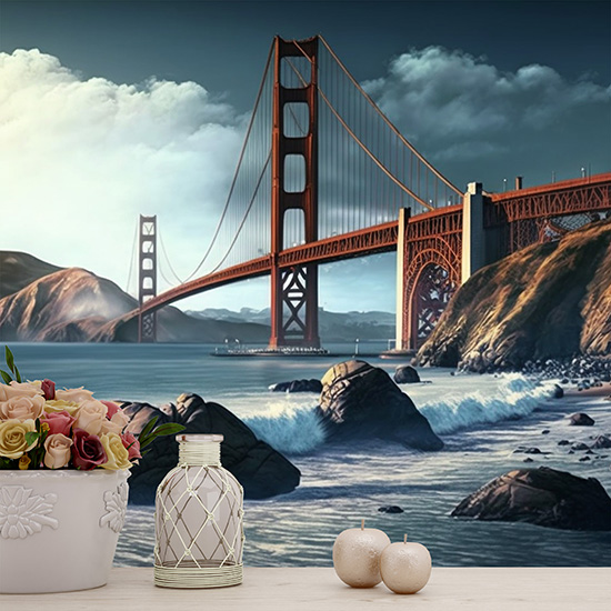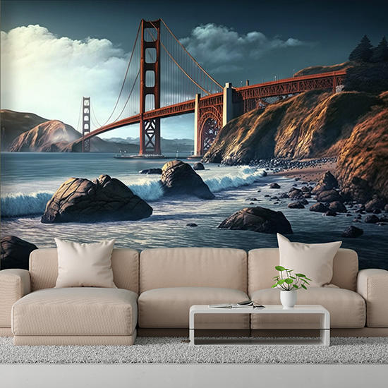 Golden Gate ve Kayalıklar Manzara Duvar Kağıdı YD-00555