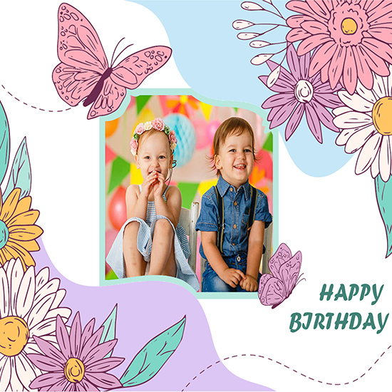 İkizler Çiçek Desenli Doğum Günü İçin Resimli Parti Afişi Duvar Kağıdı P0022