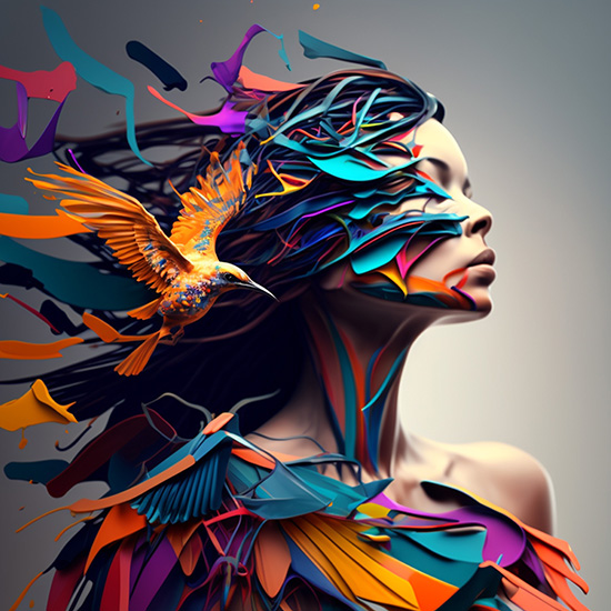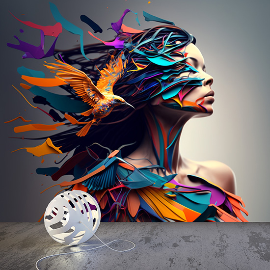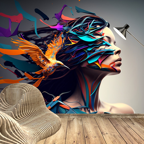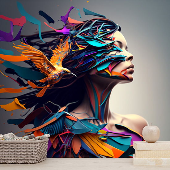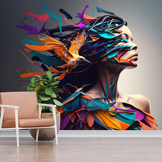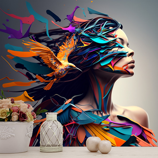 Kuş ve Kadın İllüstrasyonu Estetik Duvar Kağıtları YK-00590