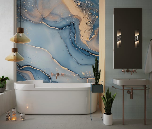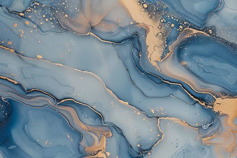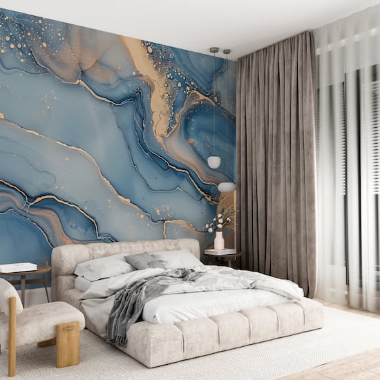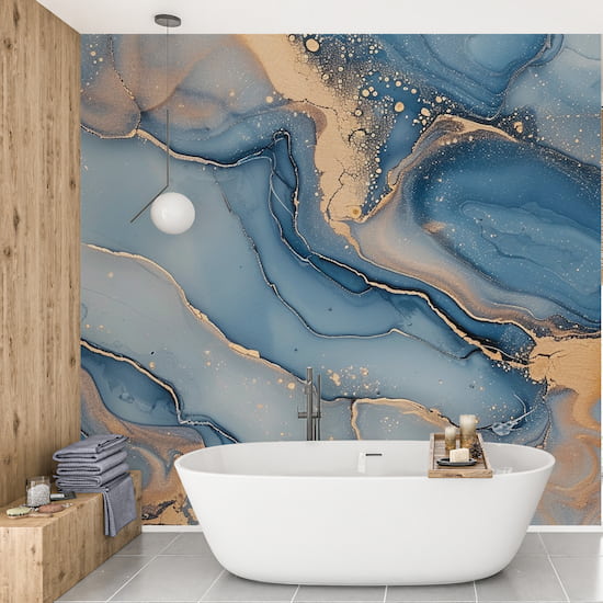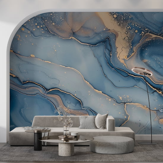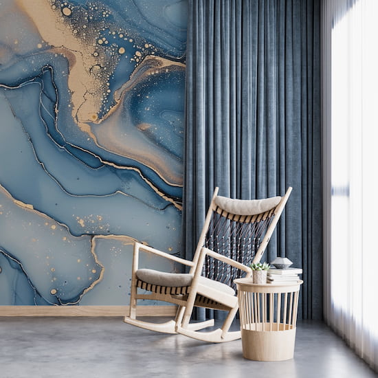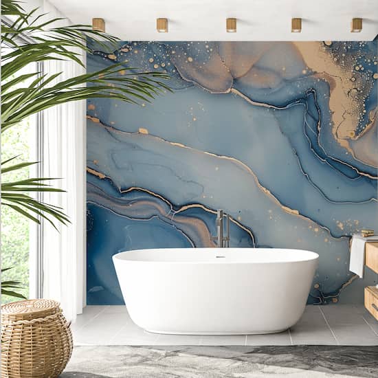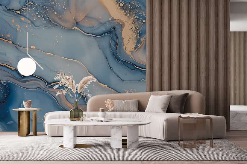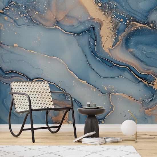Mavi Mermer Desenli Duvar Kağıdı, Altın Görünümlü Duvar Kağıtları YD-04026