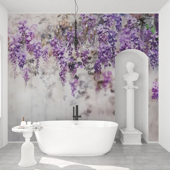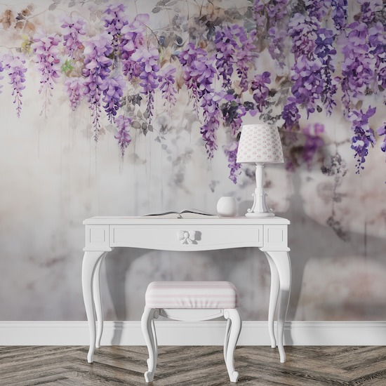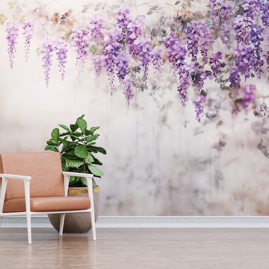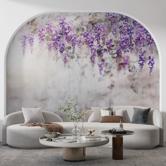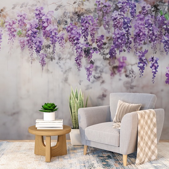Mor Salkım Çiçekler Tek Parça Salon Duvar Kağıdı YF-02359