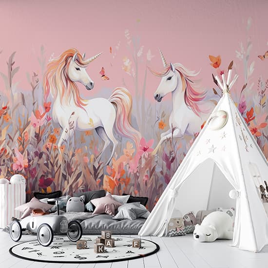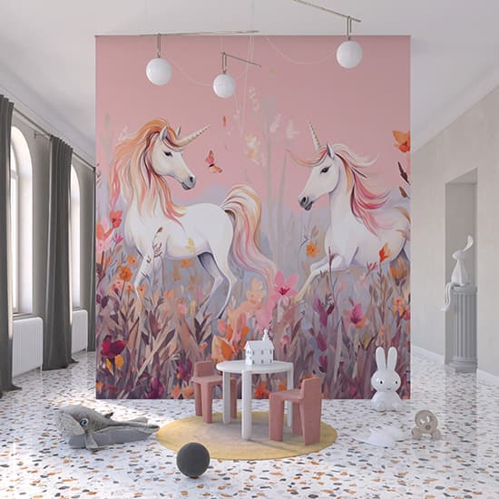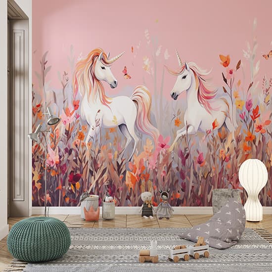 Pembe Unicornlar Çocuk Odası Poster Duvar Kağıdı YCO-02391