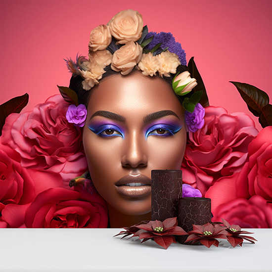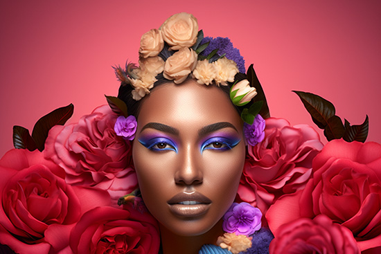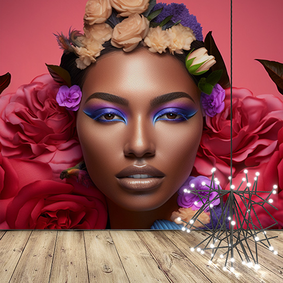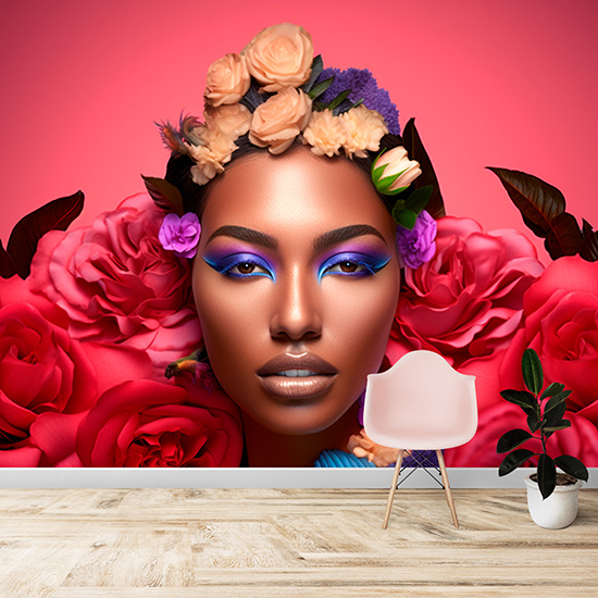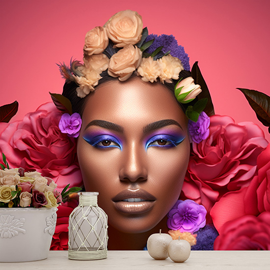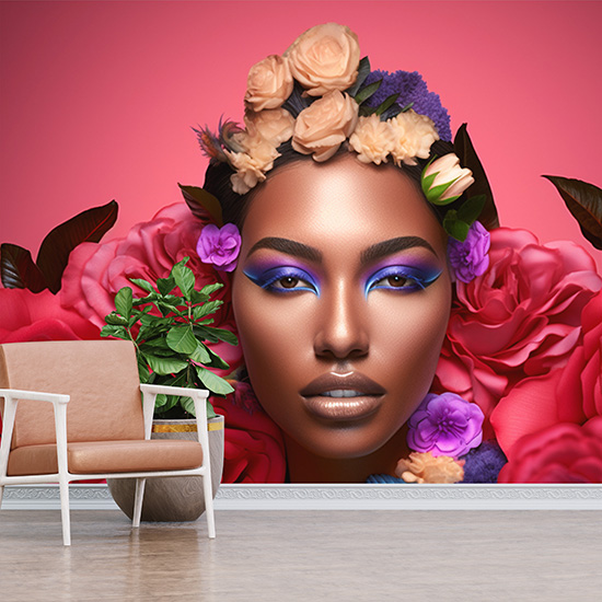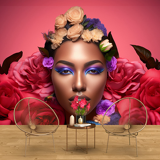 Siyahi Kadın Kuaför Duvar Kağıdı Pembe Çiçek Desenli Güzellik Salonu Poster YK-02155