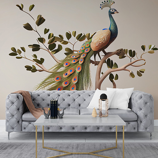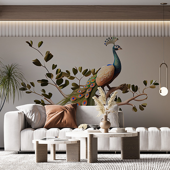 Tavus Kuşu Duvar Kağıtları Beyaz Arkaplan YH-00156