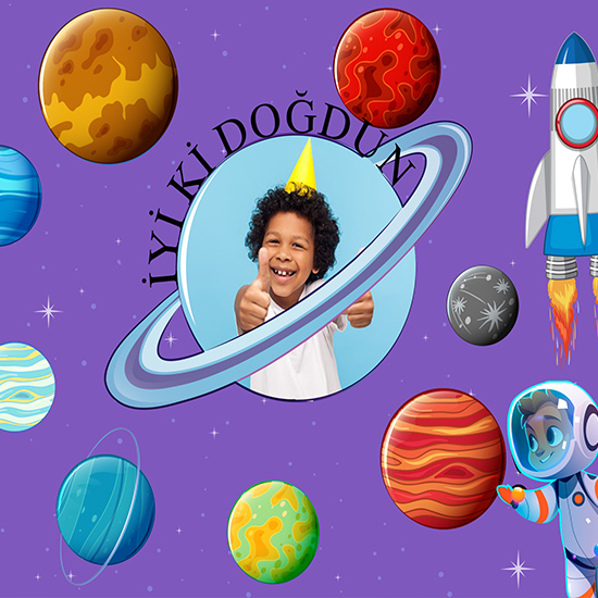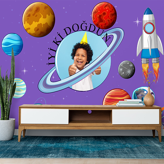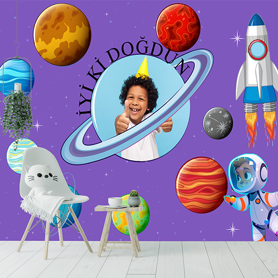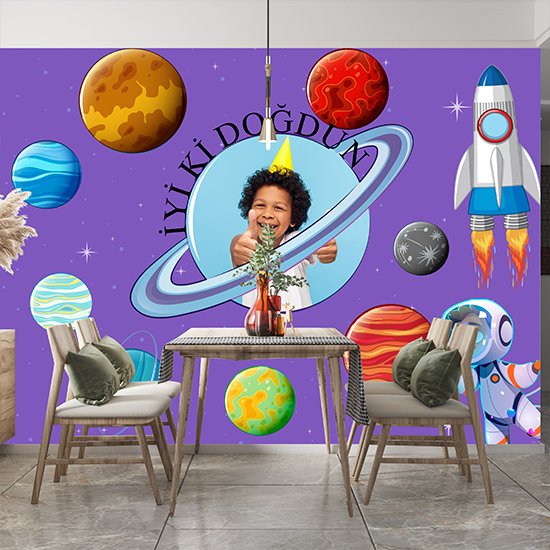 Uzay Gezegenler Temalı Doğum Günü Parti Posteri Duvar Kağıdı P0008