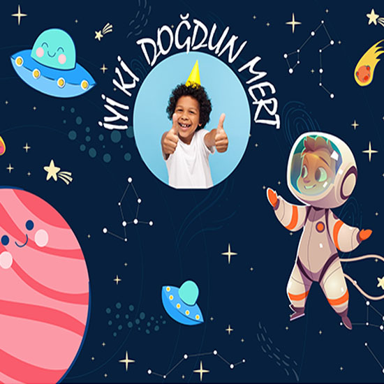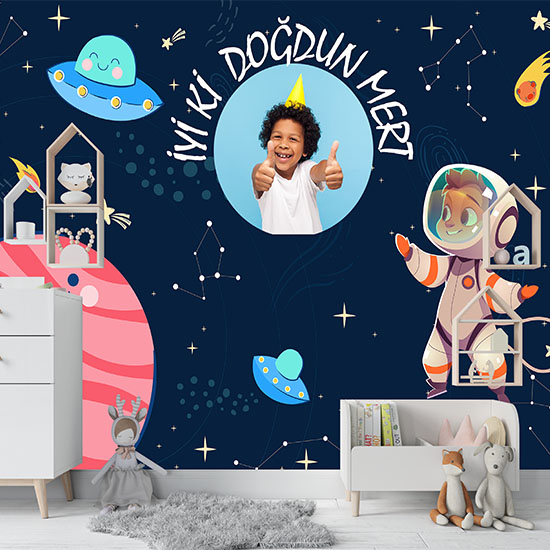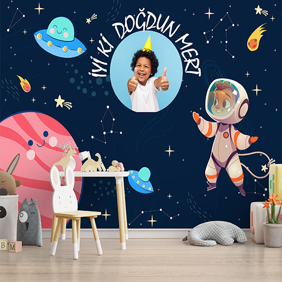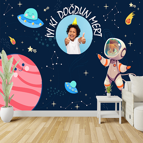 Uzay Takım Yıldızları Doğum Günü Parti Afişi Duvar Kağıdı P0016