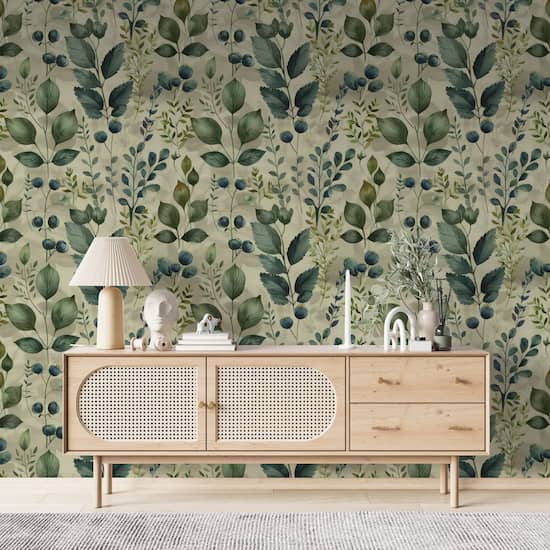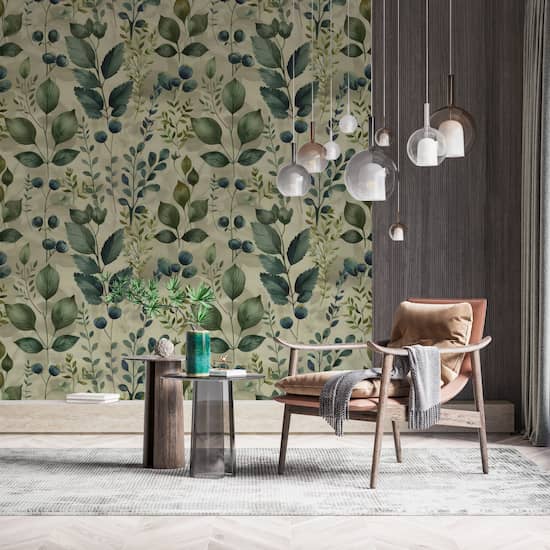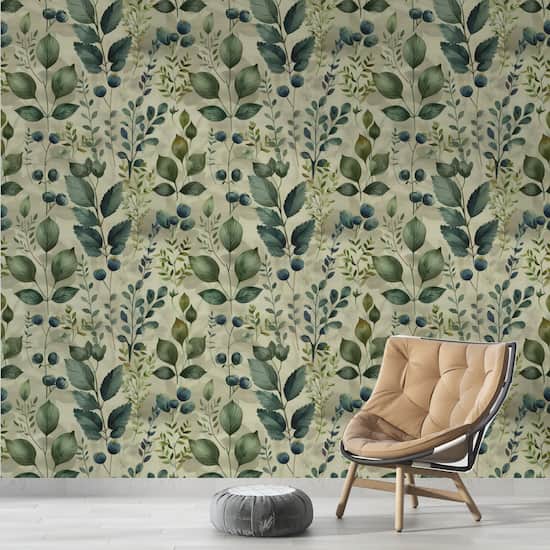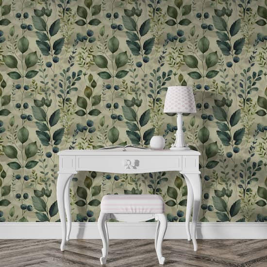 Vintage Yaprak Desenli Duvar Kağıdı, Yeşil Soft Duvar Kağıtları YF-30012