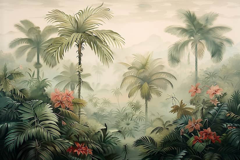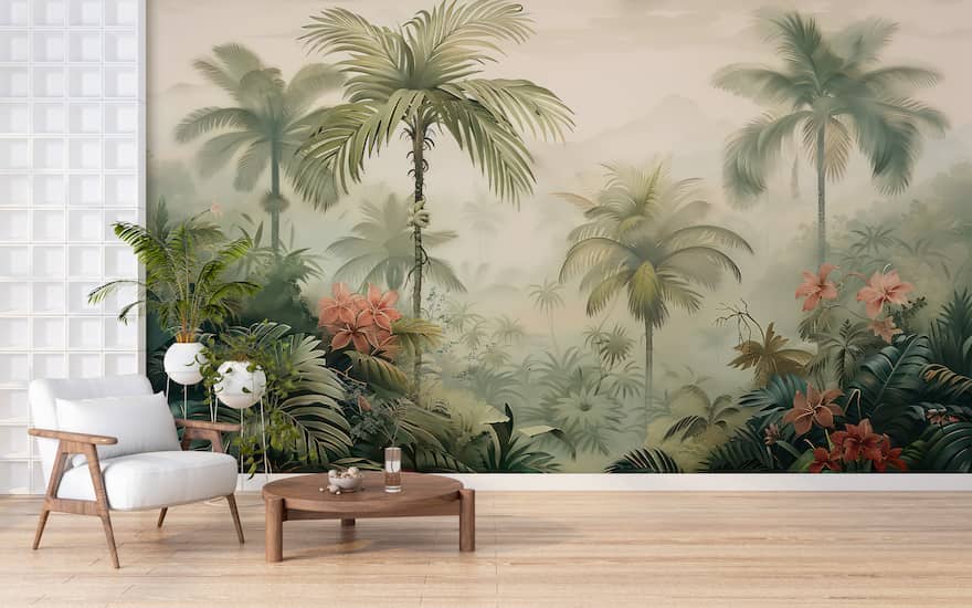 Yeşil Ağaçlar Duvar Kağıdı, Palmiye Manzaralı Duvar Kağıtları YD-02550