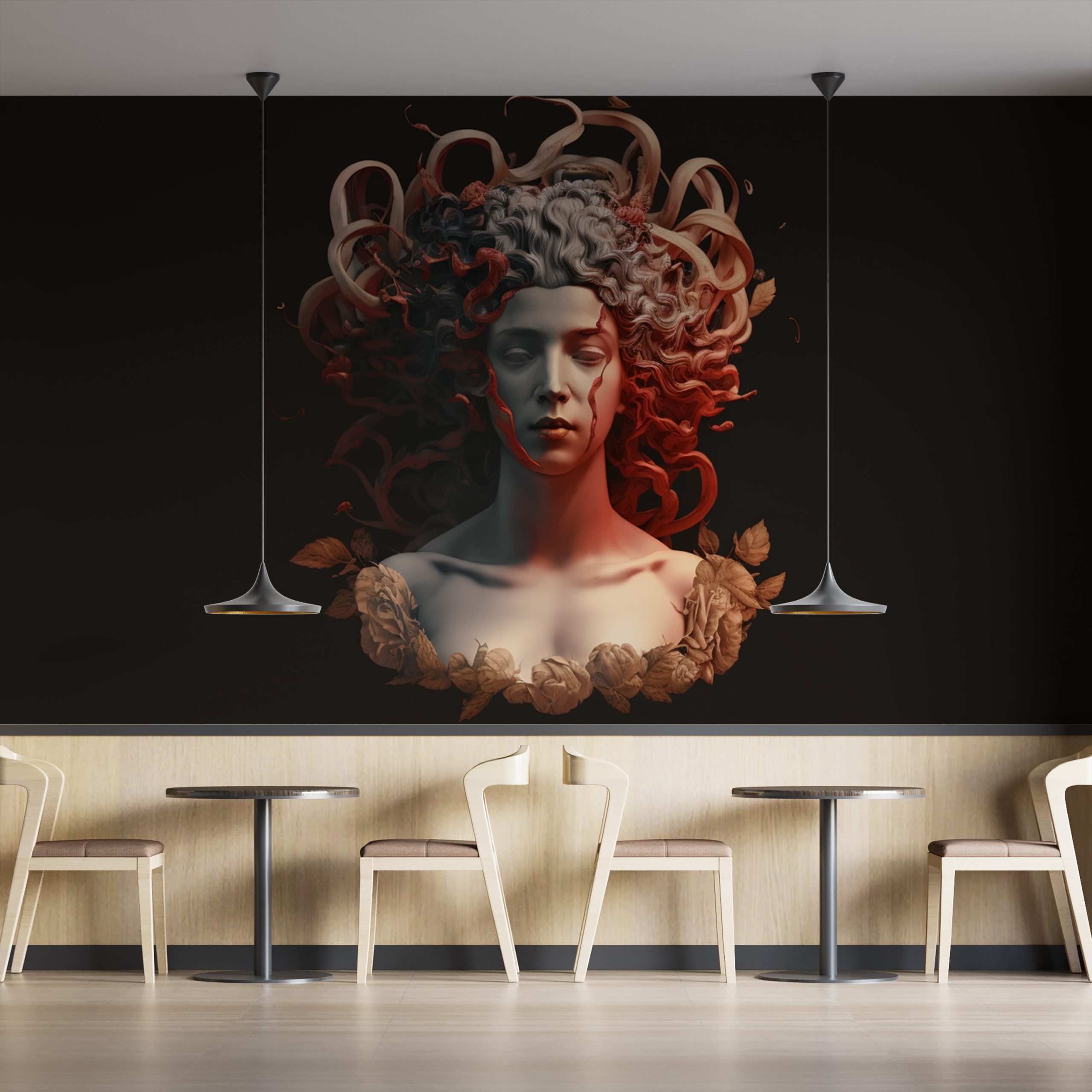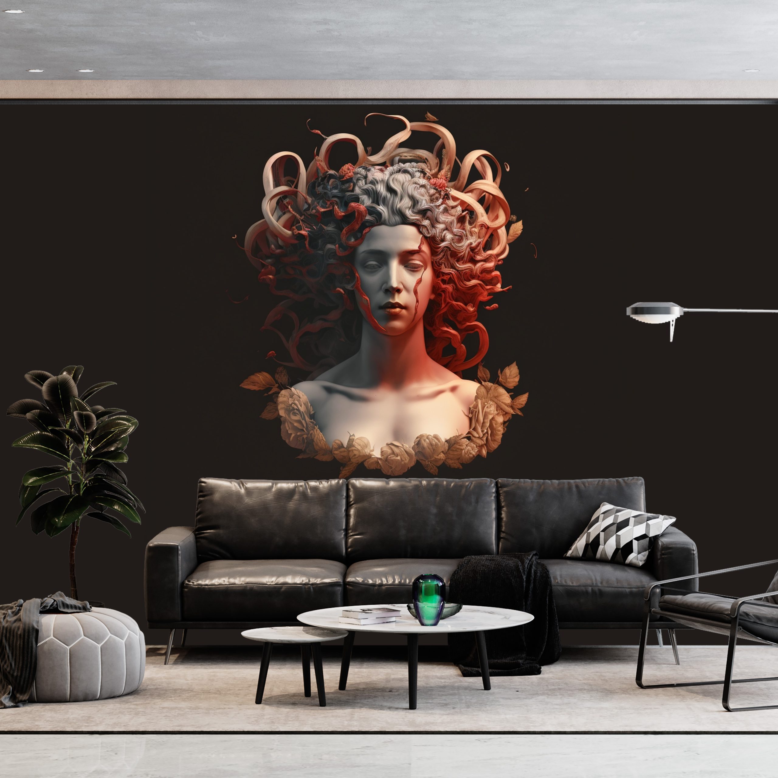 Yunan Mitolojisi Medusa Heykel Kuaför Duvar Kağıdı YM-00164